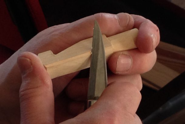 Du slöjdar med kniv, yxa, såg och borr. Materialet vi använder är färskt virke från björk och asp....