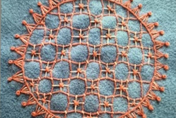 Med bottensöm kan du fylla en yta med färg och struktur. Du börjar med att sy ett galler...