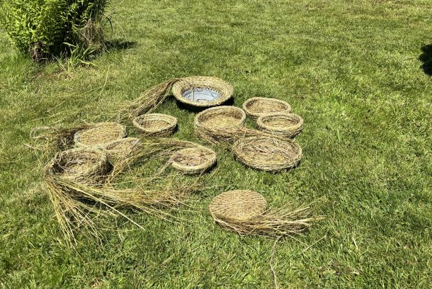 Att sy korgar av gräs och andra växtfibrer är en mycket gammal teknik. Det är ett rofyllt och...