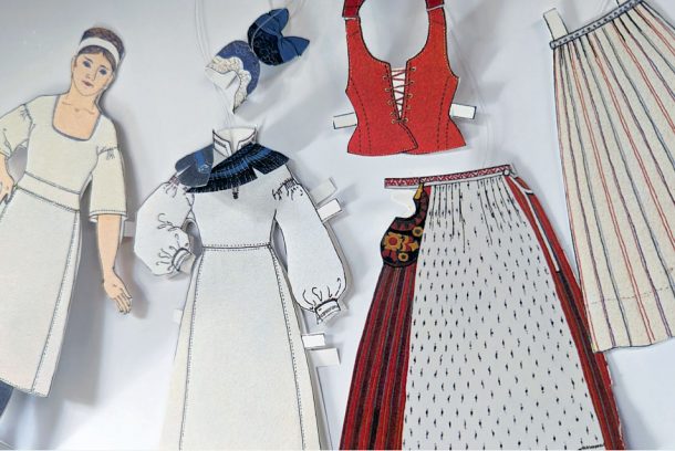 Vi tittar på äldre linneplagg, lär oss vilka delar som ingår i en klassisk folklig särk samt stygnen...
