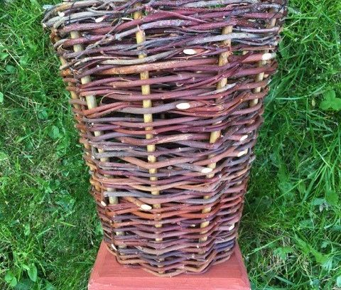 Vi gör korgar på träbotten och flätar in pil, trasor och andra återbruksmaterial. Ta med om du har....