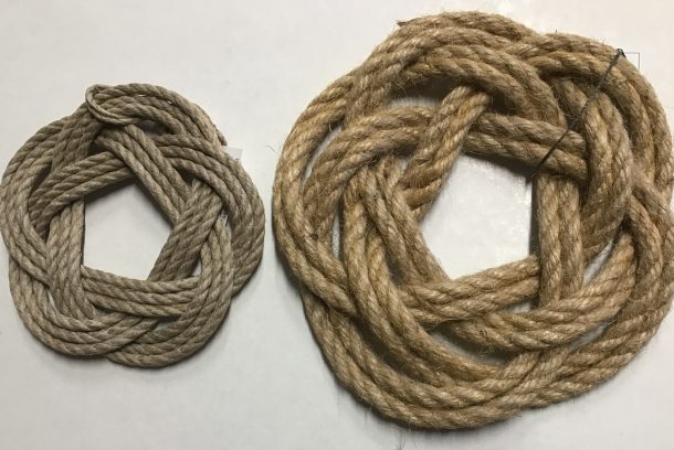 Du får lära dig grunderna i sjömansarbete. Nisse Holmdahl leder workshopen. Bilden visar valknopar i hampa som kan...