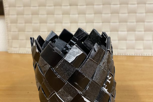 3:e april näverflätning i papper. Gisela Holmström och Ingegerd Moêll lär oss göra korgar.