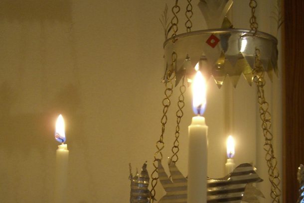 Vi gör ljusbärare, de kan både hänga från taket sitta på väggen eller stå på bordet. Bara...