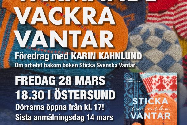 Föredrag med Karin Kahnlund som kommer att berätta för oss om arbetet bakom boken Sticka Svenska Vantar Karin...