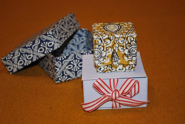 Gör en stadig liten ask i vackert papper. Vi arbetar med stadig kartong och klär sedan asken med...