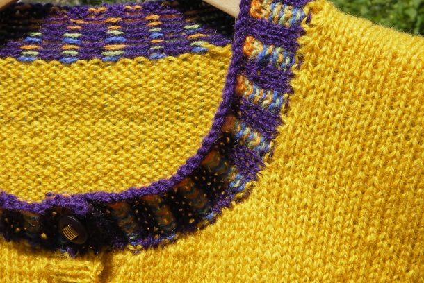 Prova på några olika varianter av uppläggningar som använts i Hälsingland, till traditionella stickade tröjor och muddar. Material...