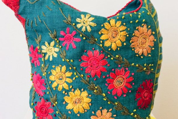 Sy en fågel i kläde och skapa ditt eget uttryck med pärlor, knappar, broderi och små tygbitar.