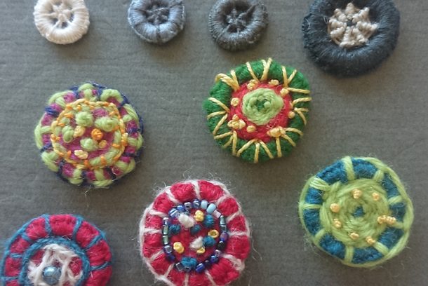 Vi fortsätter sy knappar. Nu är det lite andra garner och färger man kan använda. Kanske vill ni...