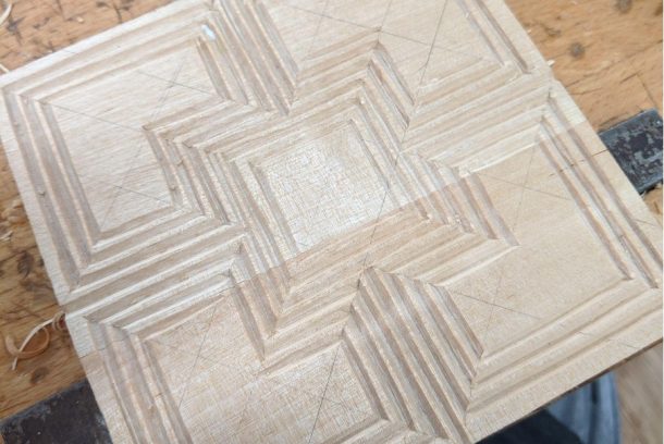 Vi går igenom olika grepp och tekniker för att skära mönster i trä. Vi testar våra nya kunskaper...