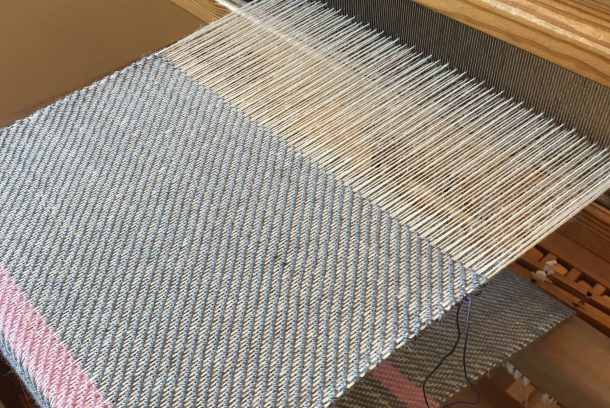 Glesripsen har en tätare varp än vanliga tuskaftsmattor, utan att den täcker inslaget. Här samspelar varp och inslag...